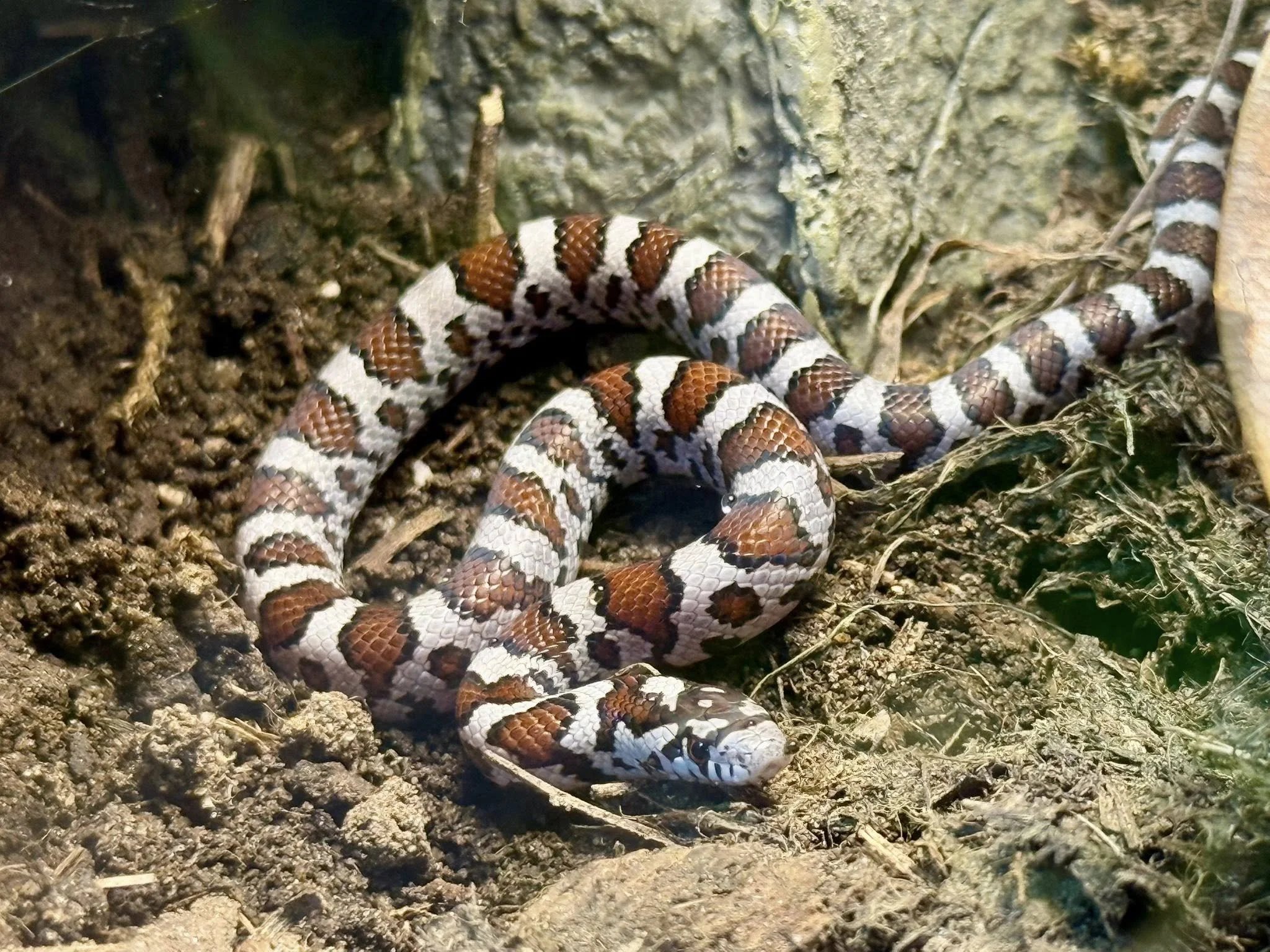 Leche is still just a wee lad but he’s growing quickly! He is a beautiful eastern milk snake and also native species here in our state of NH.